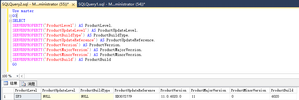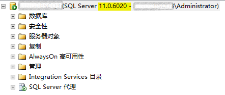 连接SQL Server Management Studio利用Object Explorer显示的主要版本号信息,如图(一)显示当前实例产品版本号事11.0.6020