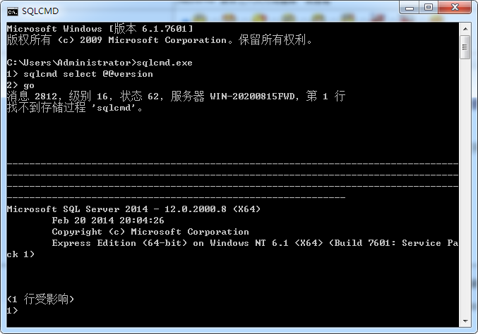 使用SQLcmd命令查看SQL server的版本,运行sqlcmd.exe打开sqlcmd命令窗口,然后执行1>sqlcmd select @@version,2>go