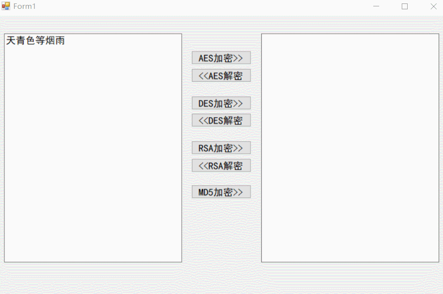 private void btn_Aes_Encrypt_Click(object sender, EventArgs e)        {          string result= AesUtil.Encrypt(textBox1.Text, "12345678900987654321");          textBox2.Text = result;        }