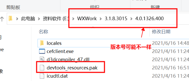 1、下载调试安装包https://dldir1.qq.com/foxmail/wwopen_docFile/devtools_resources.pak
