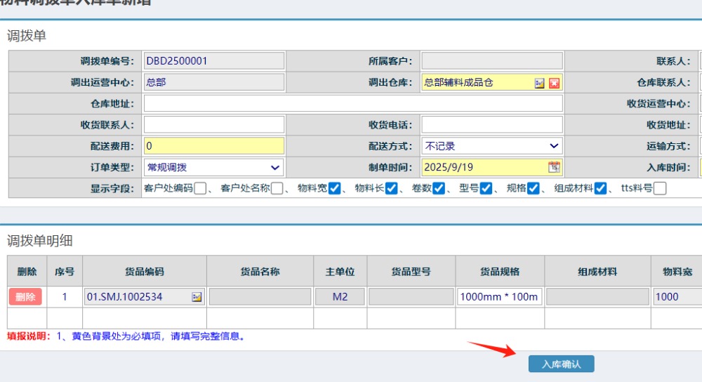 点晴模切ERP-调拨出库单-入库操作