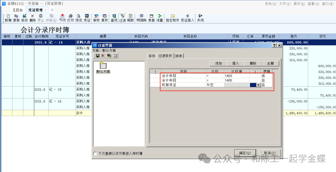 检查是否在账务处理中手工录入了存货科目凭证,如果手工录入了存货科目凭证而业务模块没有录入该单据那么就会造成总账金额大于仓存中的金额。检查方式为在总账凭证管理中设置过滤条件,然后将过滤出来的手工凭证删除,通过业务模块录入单据后生成凭证。设置过滤条件如下: