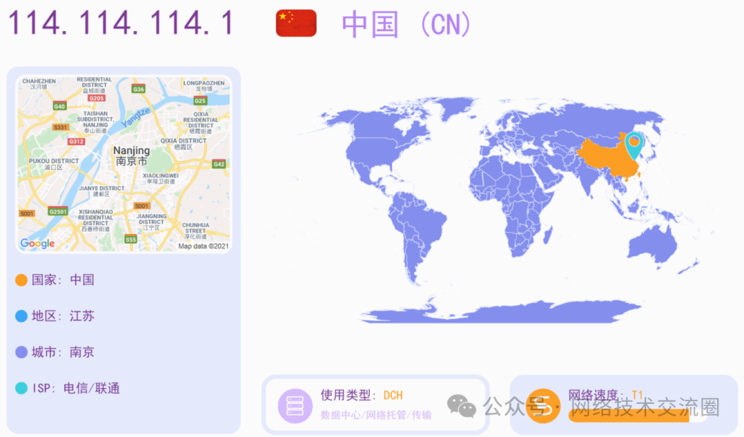 | 主要访问国内网站 | 114.114.114.114 | 距离近,延迟低,针对国内网站解析路径最优,速度快且稳定。 |