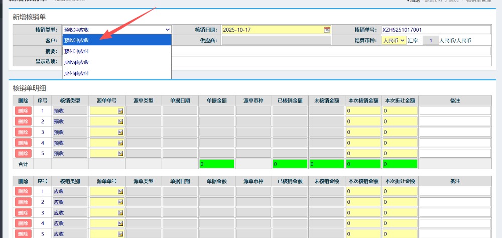 :ERP财务新增核销单操作