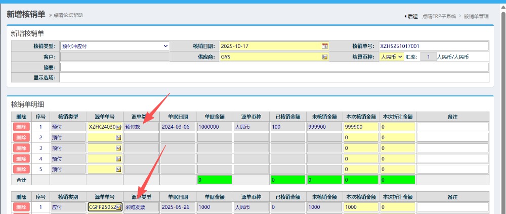 例如预付冲应付,上面明细选择对应的预付单,下面明细选择对应的对账发票单据,