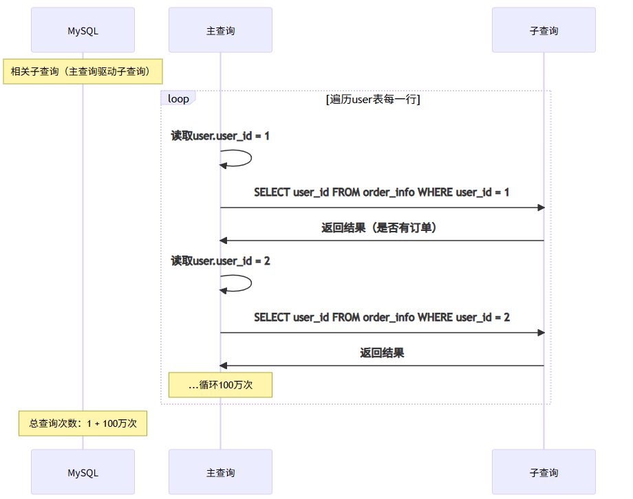 • ❌ 子查询执行100万次