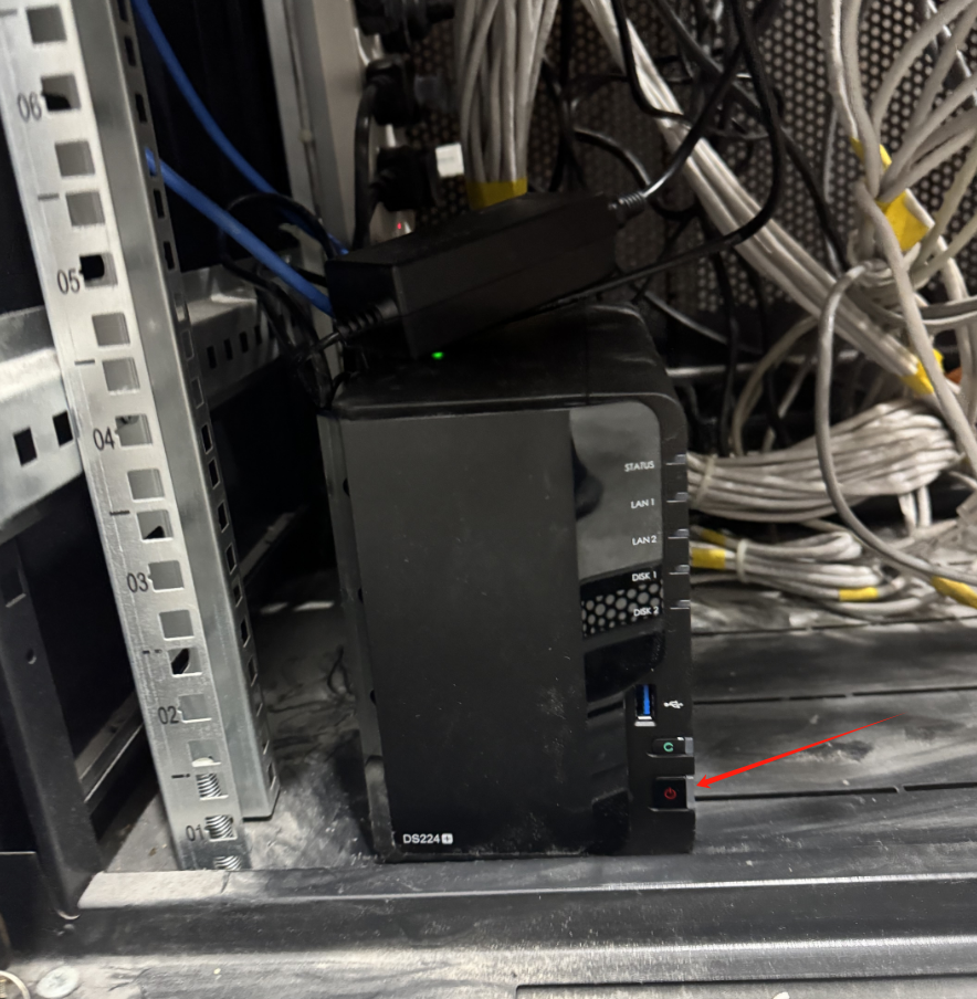 将网线连接到公司的交换机,电源接电,然后,按NAS的开机,开机。