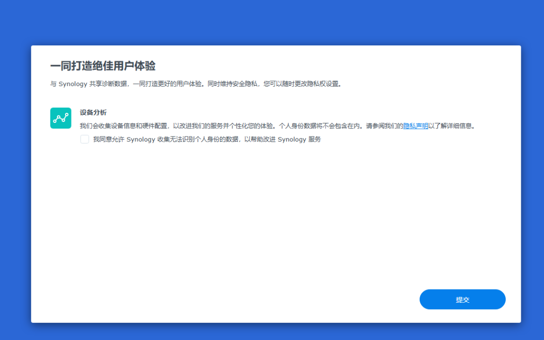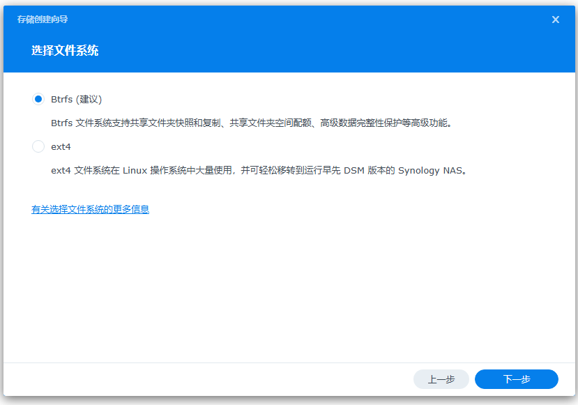 RAID模式选择,如果选择的是SHR,一般新手就可以选择SHR,当NAS里面只有一颗硬盘的时候,磁盘阵列的模式为basic,无数据保护。当再添加为一个硬盘的时候磁盘阵列的模式自动转换成类似raid1模式,空间大小不变,但是多了个数据保护。当再加入一个硬盘的时候会自动转换成类似raid5模式,当然了,你的NAS也要有支持3个盘位。