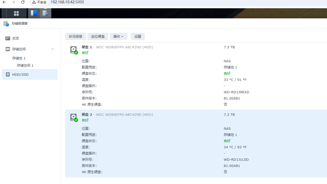 这时NAS设备的存储空间就划分好了,两块硬盘都已经添加完成,做的是RAID1。