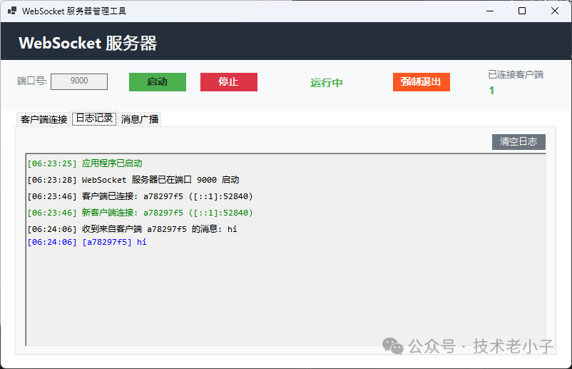 今天这篇文章,我将带你从零开始构建一个功能完整、界面精美、代码健壮的WebSocket服务器应用。不仅包含核心的WebSocket处理逻辑,还提供了WinForms可视化管理界面,让你能够实时监控连接状态、管理客户端、广播消息。